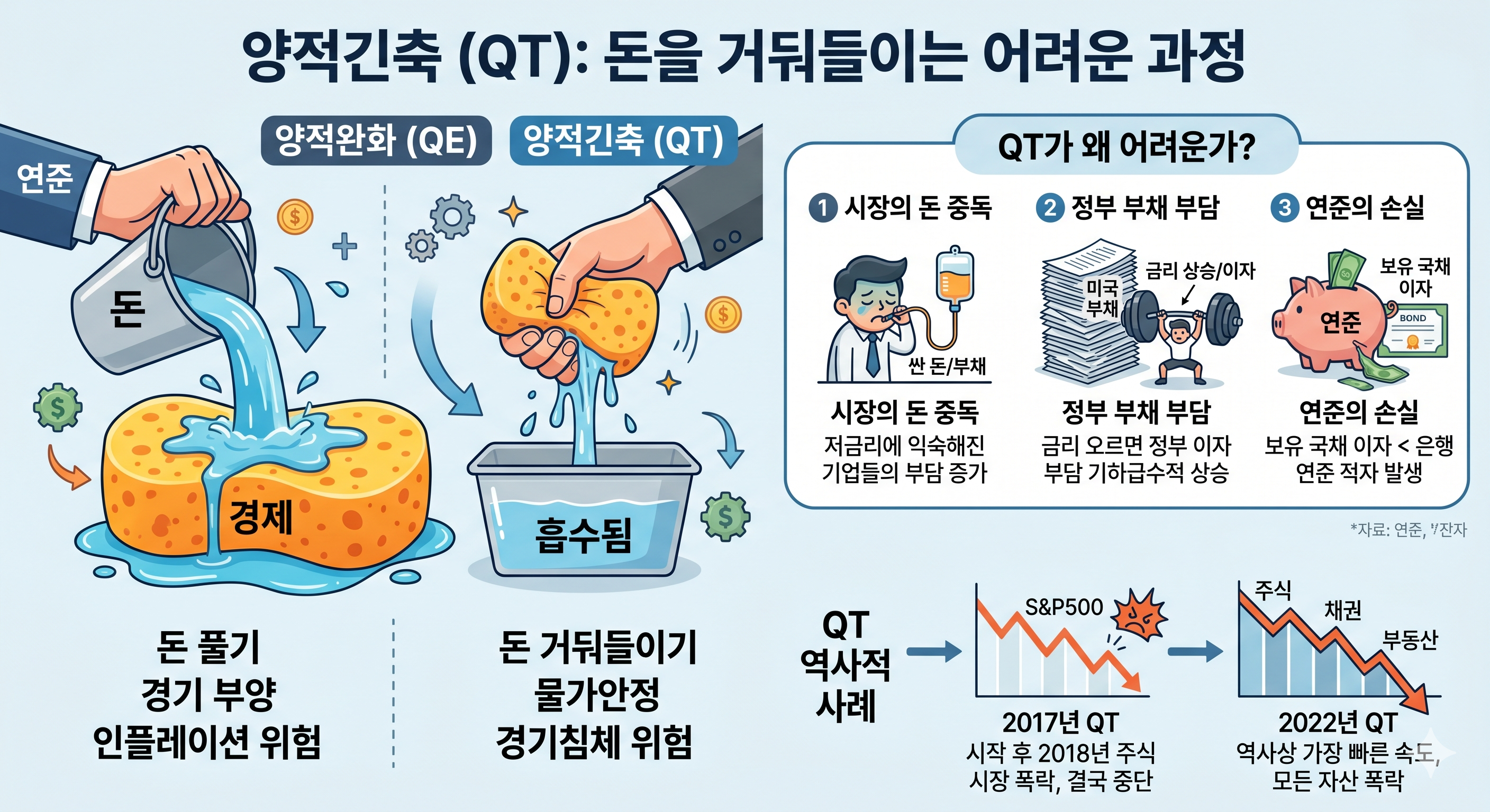 풀었던 돈을 다시 거둬들이는 양적긴축(QT, Quantitative Tightening),
